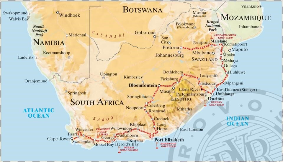 Today you´ll make an excursion to Oudtshoorn, where the largest population of ostriches in the world lives. You´ll visit an ostrich farm. Then you´ll continue to George. Leave the train for a short drive to Fancourt Golf Estate, where you´ll enjoy a delicious dinner together with the golfers.